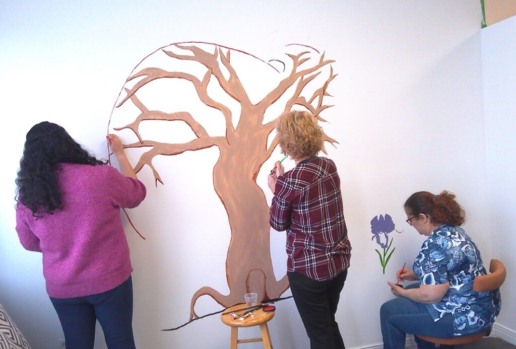 En mars, l’organisme a débuté un projet collectif de murale durant l’atelier d’art-thérapie sur un des murs du local. Le matériel est une gracieuseté de Peintures MF (magasin J. A. Bruno à Saint-Hubert). Ce beau projet permet de solidifier les liens dans le groupe et de souligner l’importance de réaliser quelque chose de grand ensemble. Inauguration prévue en mai lors d’une journée portes ouvertes.