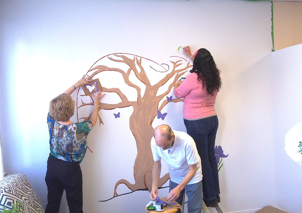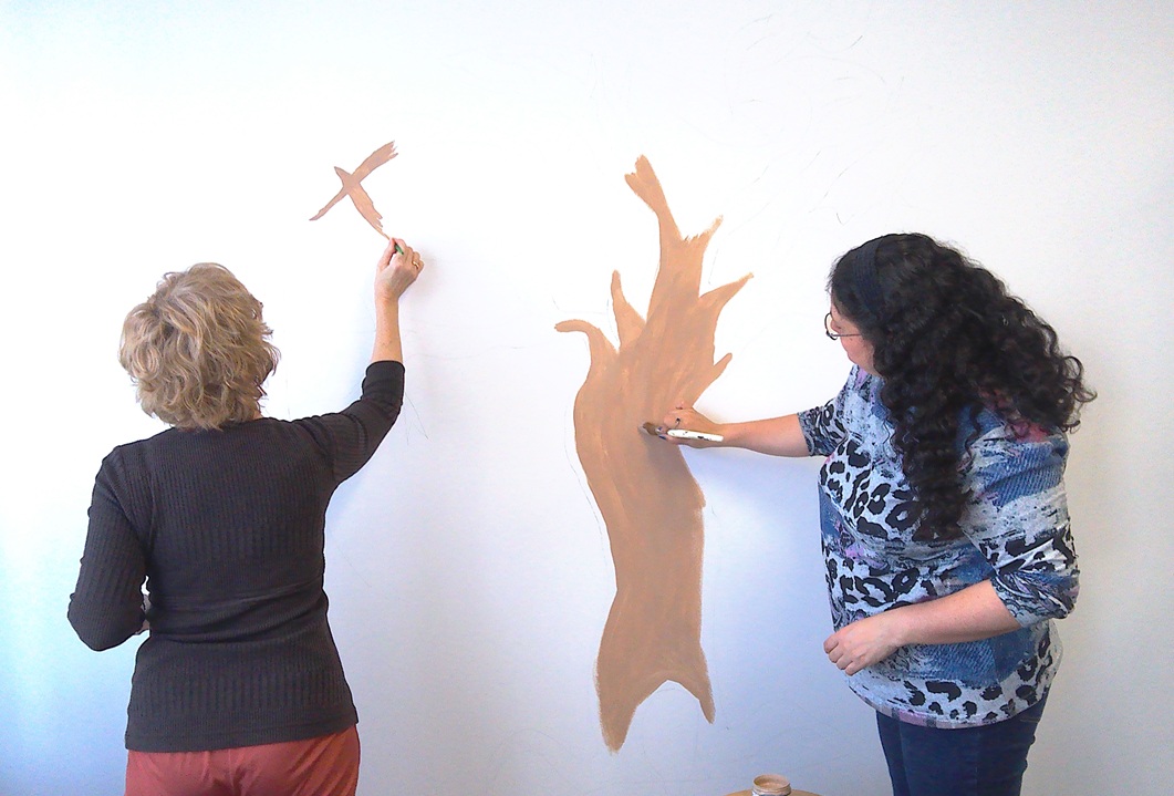 En mars, l’organisme a débuté un projet collectif de murale durant l’atelier d’art-thérapie sur un des murs du local. Le matériel est une gracieuseté de Peintures MF (magasin J. A. Bruno à Saint-Hubert). Ce beau projet permet de solidifier les liens dans le groupe et de souligner l’importance de réaliser quelque chose de grand ensemble. Inauguration prévue en mai lors d’une journée portes ouvertes.