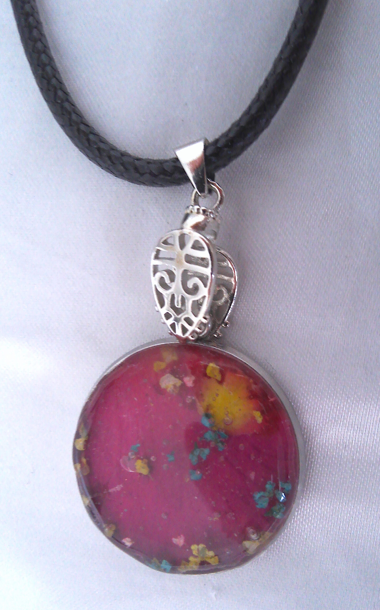 | matériau | collier en simili cuir et pendentif en résine époxydique |